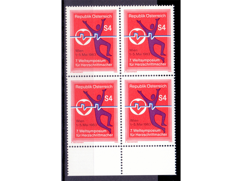 Österreich 1983 Weltsymposium Herzschrittmacher 4er Block / **