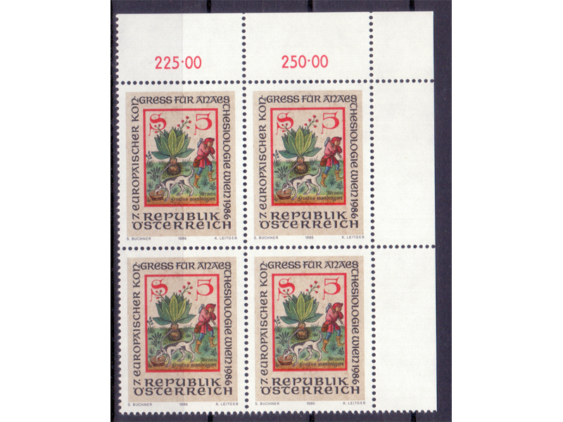 Österreich 1986 Kongreß für Anästhesiologie 4er Block / **