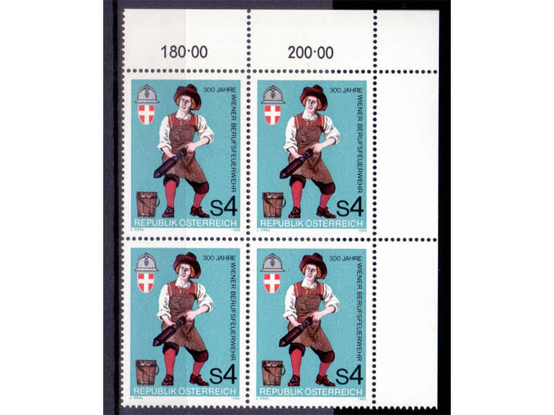 Österreich 1986 Wiener Berufsfeuerwehr 4er Block / **