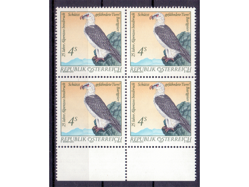Österreich 1987 Schutzt gefährdete Tiere 4er Block / **