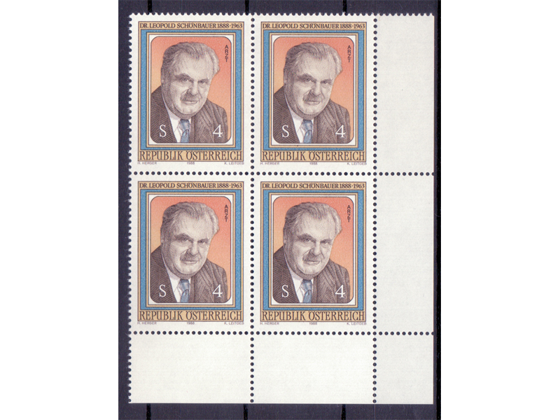 Österreich 1988 Leopold Schönbauer 4er Block / **