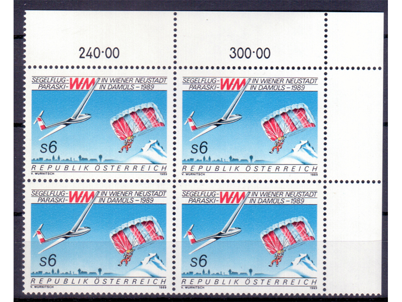 Österreich 1989 Segelflug WM 4er Block / **