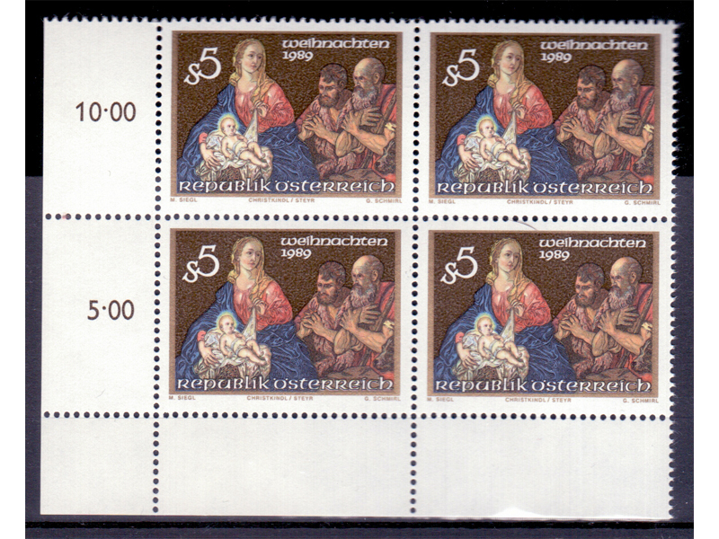 Österreich 1989 Weihnachten 4er Block / **