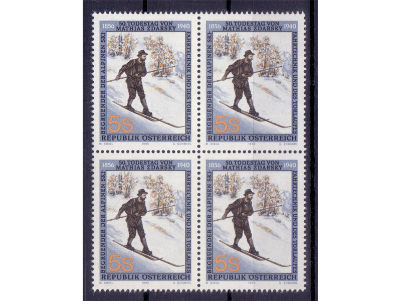 Österreich 1990 Mathias Zdarsky 4er Block / **