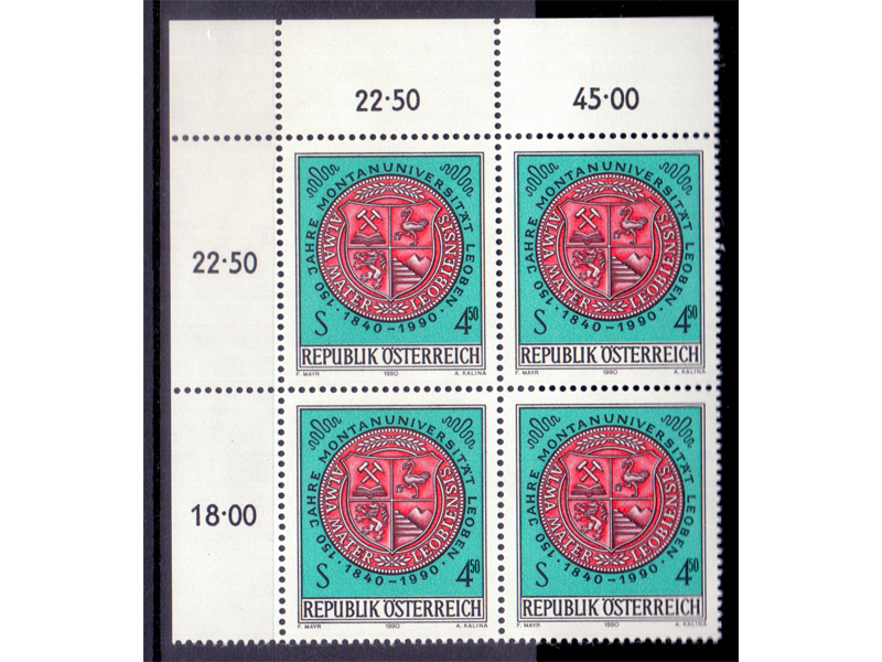 Österreich 1990 Montanuniversität Leoben 4er Block / **