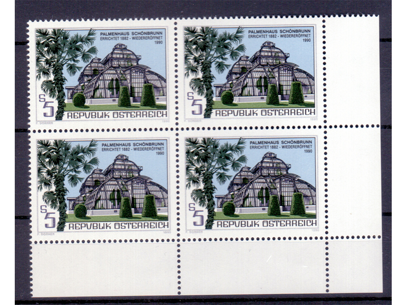 Österreich 1990 Palmenhaus Schönbrunn 4er Block / **