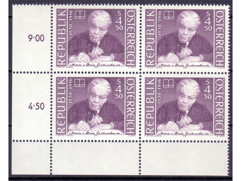 Österreich 1991 Maria Ebner-Eschenbach 4er Block / **