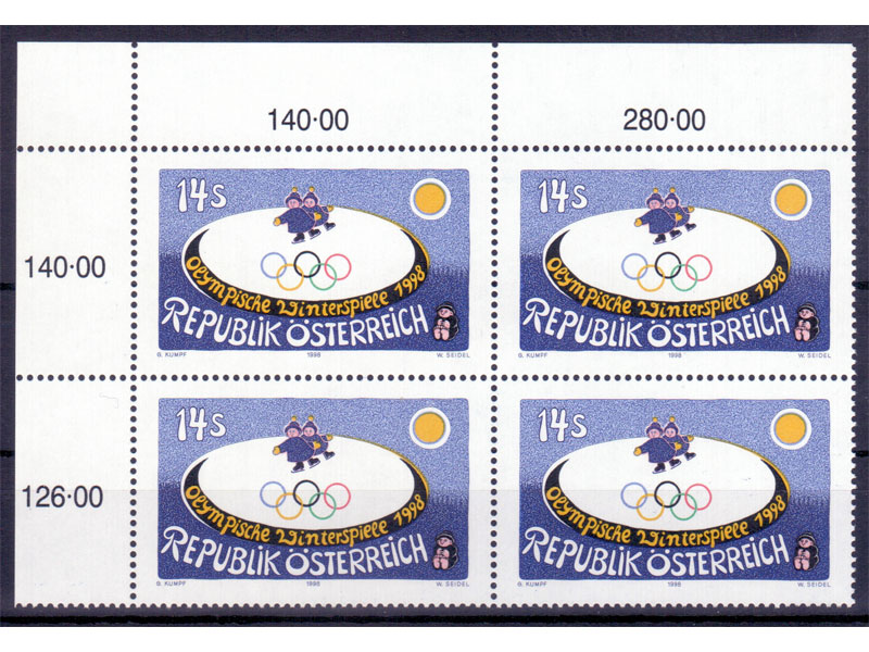 Österreich 1998 Olympische Winterspiele Nagano 4er Block / **